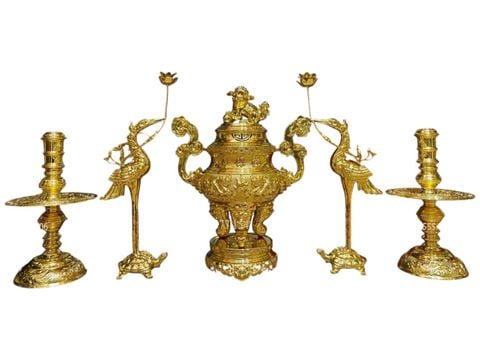 Bộ đỉnh đồng thờ ngũ sự 65cm 38kg dát vàng nano