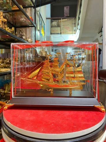 Quà tặng sếp nam nữ: Mô hình thuyền buồm bằng đồng mạ vàng 24k