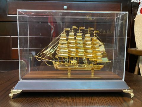 Quà tặng vip - quà tặng sếp: Mô hình thuyền buồm mạ vàng 24k quà tặng sếp
