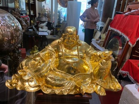 Tượng phật di lặc dát vàng bằng đồng dát vàng 24k cao 32cm ngang 63cm nặng 23,5kg