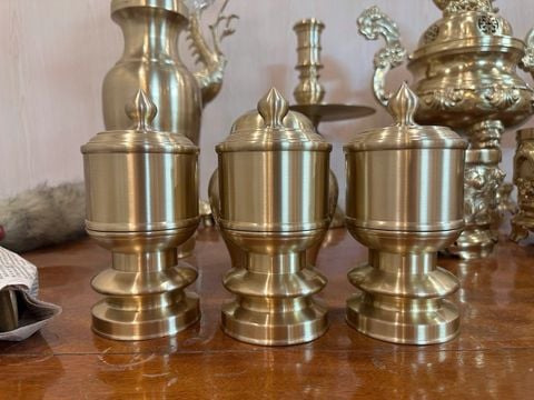 Đài thờ bằng đồng đỏ Bộ 3 đài đk 10 cao 20,5 nặng 5,3 kg
