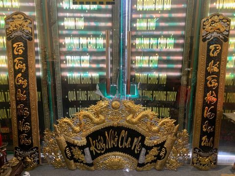 Kích thước: cuốn thư có chiều dài 1m55, cao 80 cm, câu đối có chiều dài 1m55, rộng 25cm