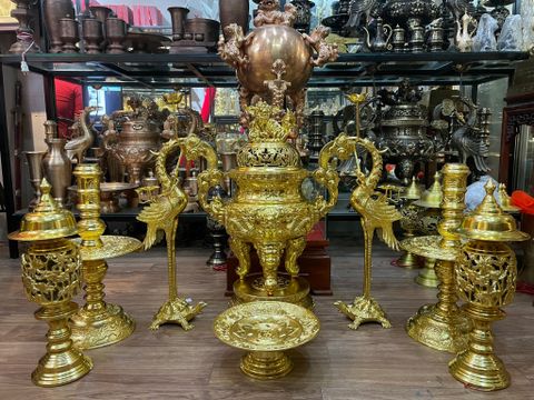 Bộ đỉnh đồng 75cm nặng 42kg dát vàng nano
