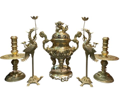 Bộ đỉnh đồng cát tút song long chầu nguyệt mẫu chữ việt cao 60cm nặng 29kg hàng kĩ
