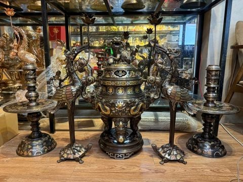 Bộ đỉnh đồng ngũ sự cao 70cm nặng 65kg hàng nghệ nhân