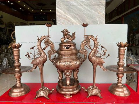 Bộ đỉnh đồng sòi 60cm đồng đỏ