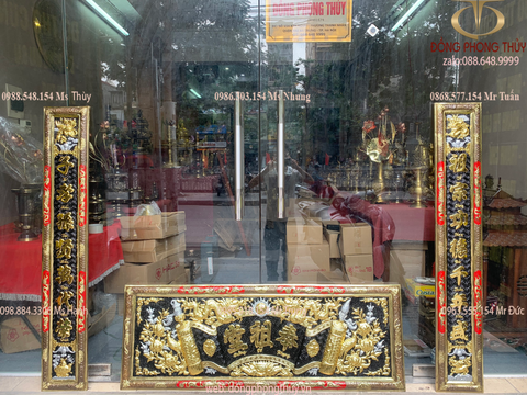Hoành phi câu đối dát vàng điểm nổi kích thước 1m35