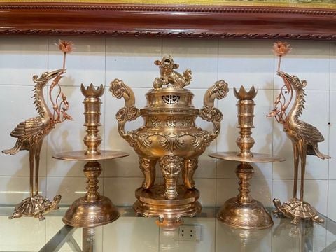 Bộ ngũ sự đỉnh đồng 70cm 60kg đồng đỏ cực kĩ hoa Sòi