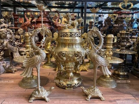Bộ đỉnh đồng Bộ ngũ sự cát tút cao 65cm nặng 34kg