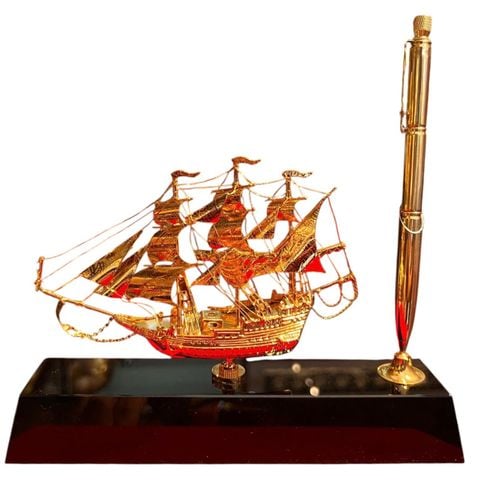 Quà tặng doanh nghiệp: Bút ký + Mô hình thuyền buồm mạ vàng 24k