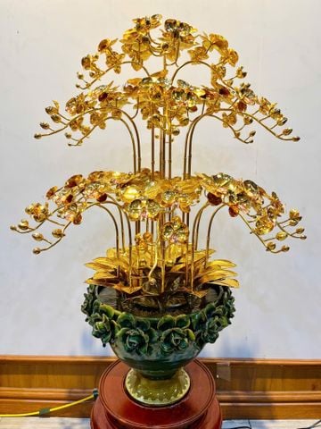 Chậu hoa lan 18 cành bằng đồng mạ vàng 24k