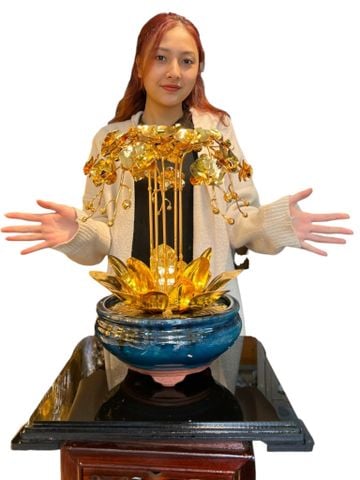 Quà tặng mạ vàng vip: Chậu hoa lan hồ điệp 5 cành cao 48cm mạ vàng 24k