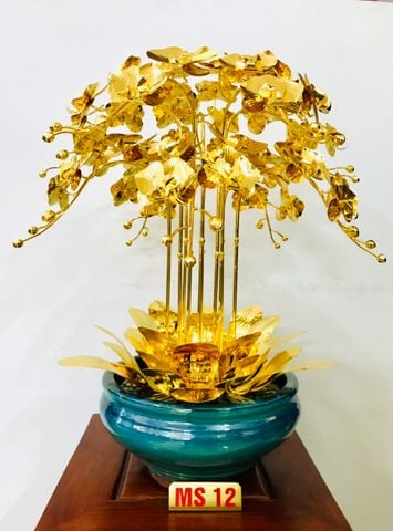 Chậu hoa lan hồ điệp bằng đồng mạ vàng 24k 10 cành cao 52cm ms12