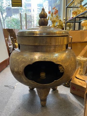 Đỉnh hóa vàng/ Lư đốt vàng mã gia đình bằng đồng cao 81cm ngang 54cm nặng 13,5kg