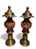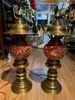 Đôi đèn thờ cúng bằng đồng đỏ khảm ngũ sắc