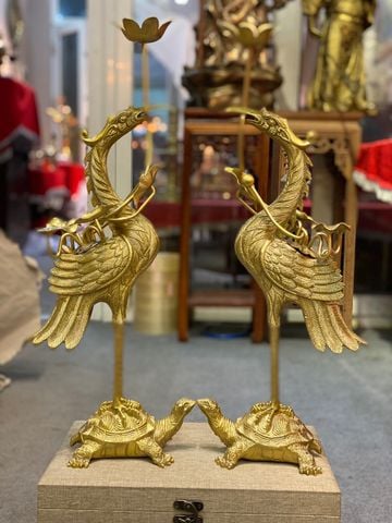 Đôi hạc đồng 58cm nặng 5kg màu vàng đậm