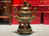 Đỉnh đồng tam sự khảm tam khí cao 45cm