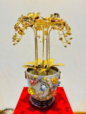 Chậu Lan 5 cành đắp hoa nổi Cao 56cm