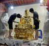 Hoa nghiêm tam thánh bằng đồng đỏ dát vàng 24k