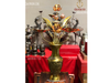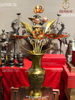 Lọ hoa 35 vàng đậm và bó hoa sen 10 cành bằng đồng