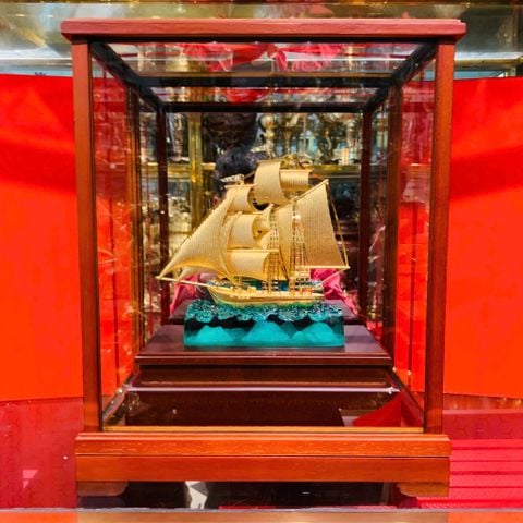 Mô hình thuyền buồm mạ vàng 24k 17x29x35cm