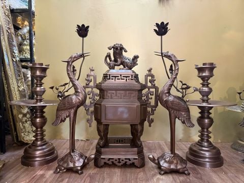 Ngũ sự đỉnh vuông bằng đồng đỏ màu cổ