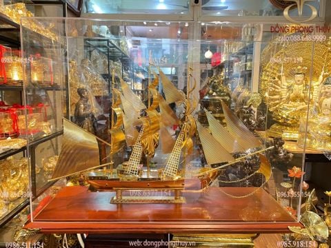 Quà tặng vip: Mô hình thuyền buồm mạ vàng 24k cao 71.5 dài 96 sâu 33cm
