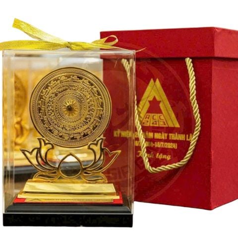 Quà lưu niệm: trống đồng lưu niệm dát vàng nano
