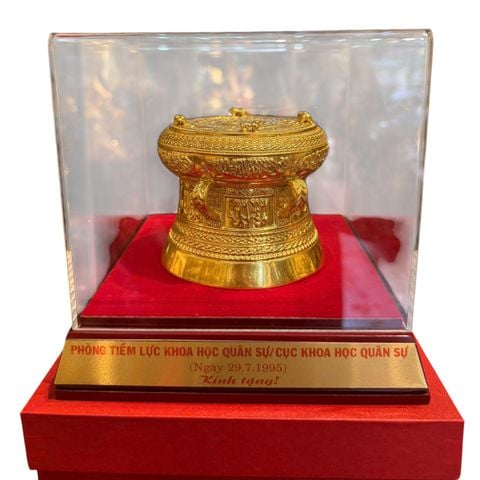 Quà lưu niệm: Trống đồng lưu niệm dát vàng 24k