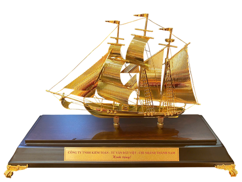 mô hình thuyền buồm mạ vàng 24k