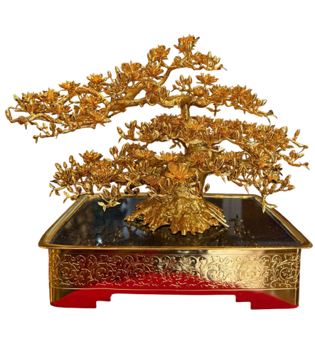Quà tặng mạ vàng: Chậu Mai vàng 24k đế vuông bằng đồng mạ vàng