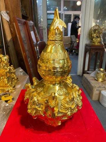 Hồ lô phong thủy bát tiên bằng đồng dát vàng 24k