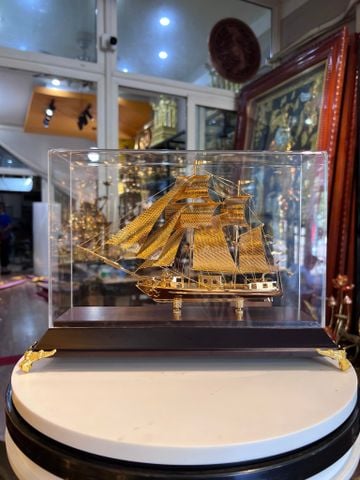 Quà tặng sếp : mô hình thuyền buồm mạ vàng 24k