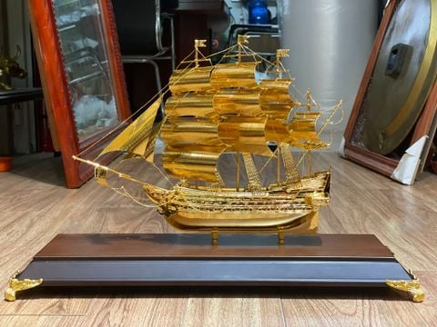 Quà tặng sếp: Mô hình thuyền buồm mạ vàng 24k