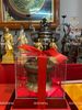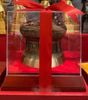 Quả trống đồng Đông Sơn bằng đồng đường kính 20cm cao 15cm bao gồm kính mica hộp đỏ