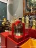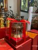 quả trống đồng đông sơn bằng đồng đường kính 20cm cao 15cm bao gồm kính mica hộp đỏ