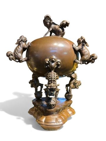 Lư đốt trầm Thất lân 40cm nặng 8kg màu da lươn.Lư đốt trầm thất lân vơn cầu màu da lươn siêu đẹp, độ bóng sâu cho các bác sưu tầm. Màu nhiệt độ cao bóng tự nhiên từ đồng không phun bóng.
