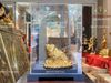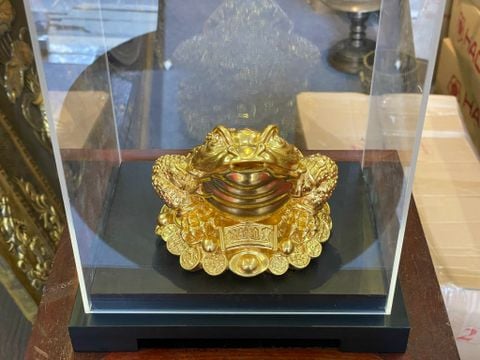 Thiềm thừ bằng đồng dát vàng 24k đôn gỗ hộp mica