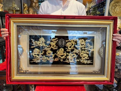 Tranh cửu long bằng đồng mạ vàng 24k 40x65cm