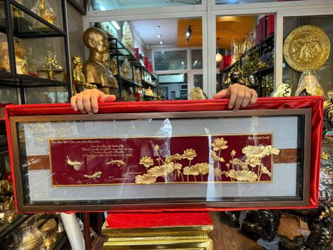 Tranh hoa sen mạ vàng 24k 29x87cm
