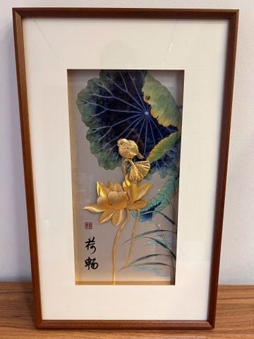 Tranh hoa sen mạ vàng 24k - Kim Liên Tước Vũ 40x65cm