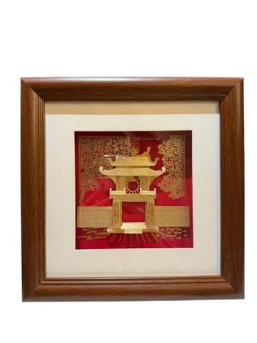 Tranh Khuê Văn Các bằng đồng mạ vàng 24k 24x24cm