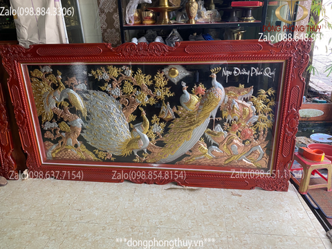 Tranh treo phòng khách: Ngọc Đường Phú Quý bằng đồng khung gỗ Hương Đỏ 1m2*2m3