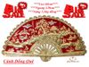 Tranh Quạt Đồng Quê bằng đồng 60cm*1m2 nền đỏ