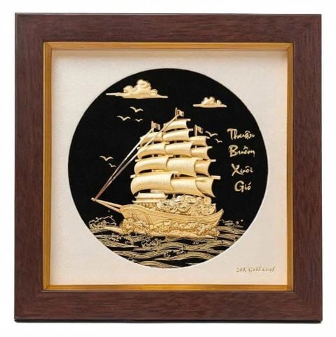 Quà tặng mạ vàng: Tranh thuyền buồm mạ vàng 24k 20x20cm