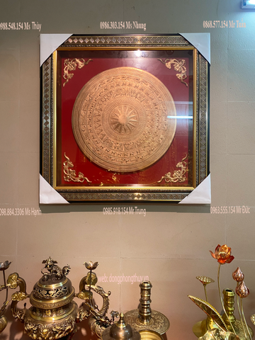 Tranh trống đồng khung 1m * 1m mặt trống đồng đường kính 60cm