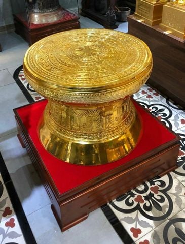 Trống Đồng Đông Sơn Hoa Văn Ngọc lũ Đồng Đỏ Thiếp Vàng 24K - Trống Đồng Đông Sơn Đủ Kích Thước 15cm Đến 1 mét
