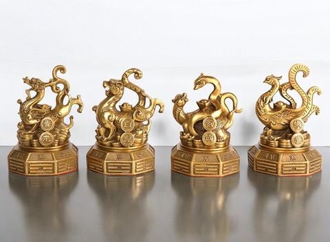 Tứ linh long lân quy phụng bằng đồng cao 26cm nặng 10kg
