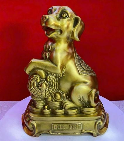 tượng chó phong thủy giáp tiền cỡ đại cao 28cm bằng đồng / cao 28 ngang 23.5 rộng 13 nặng 2.9kg / Đồng vàng nguyên chất 100% - 3,700,000 VND