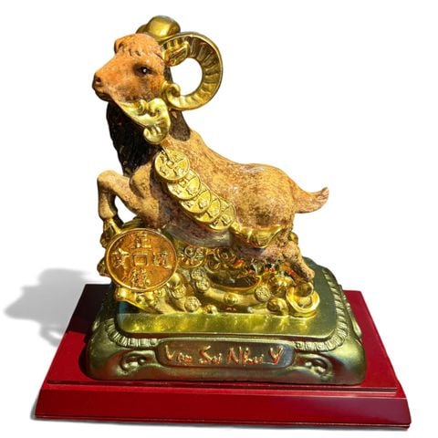 Tượng dê bằng đồng màu khoáng nhiệt dát vàng nano